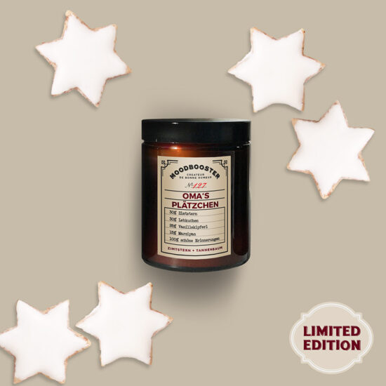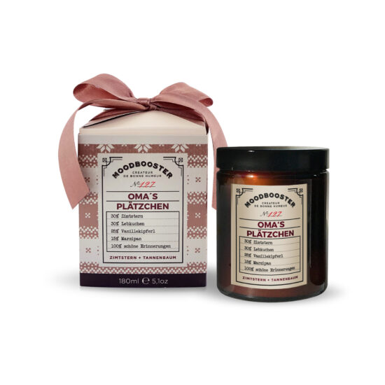 Our unique scents were developed in collaboration with world-famous perfumers from France. Moodbooster candles are hand-poured in Germany. Our product is environmentally friendly, free from harmful substances, organic, and cruelty-free. Reusable 180 ml glass containers are packed with love in original gift boxes. Burn time: approx. 45 h.